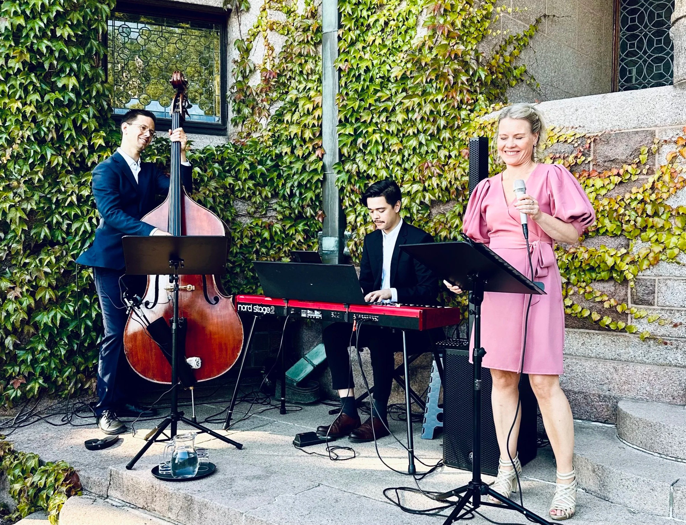 Vi är en liten orkester bestående av sång, kontrabas och piano som har spelat tillsammans i över fem år. Vi spelar jazzig musik på olika typer av tillställningar och vi gör även konserter. Repertoaren är blandad, vi rör oss mellan olika stilar och gör egna tolkningar av artister som tex Monica Zetterlund, Alice Babs, Nat King Cole, Elvis och ABBA.